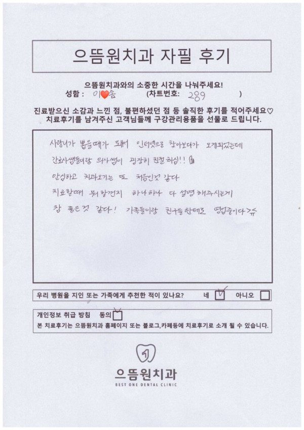 페이지 정보 작성자 최고관리자 댓글 0건 조회 540회 작성일 23-12-18 10:21 목록 후기 본문 사랑니까 뽑을때가 돼서 인터넷으로 찾아보다가 오게되었는데 간호사쌤들이랑 의사쌤이 굉장히 친절하심 목록목록 이전글후기 23.12.18 댓글 0 댓글목록 등록된 댓글이 없습니다.