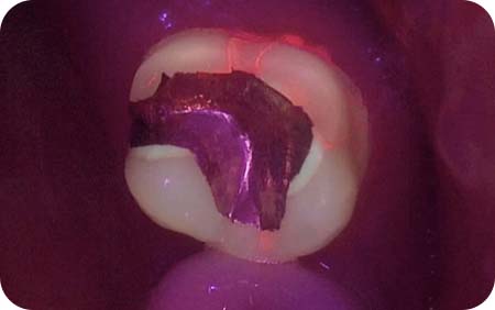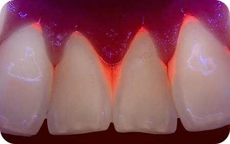 세균이나 충치 부위에서 발생하는 붉은 형광 반응을 감지하여