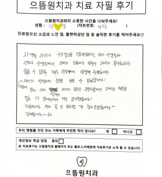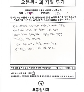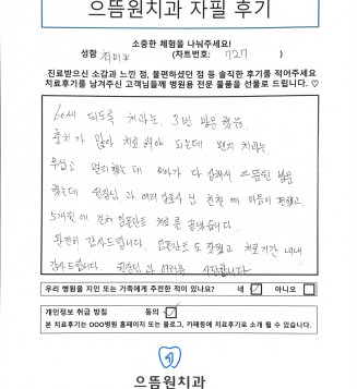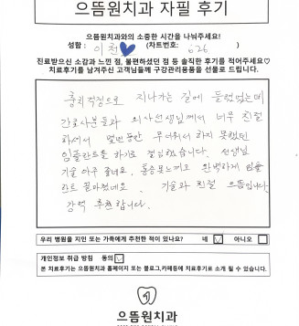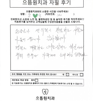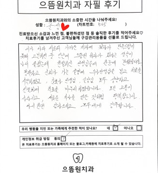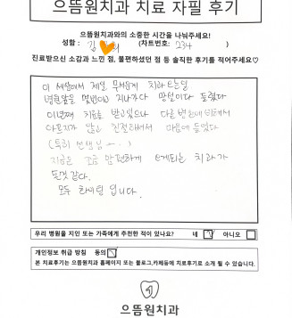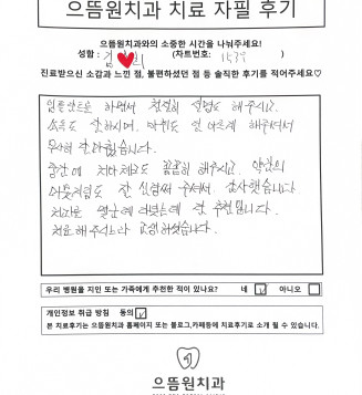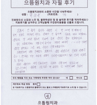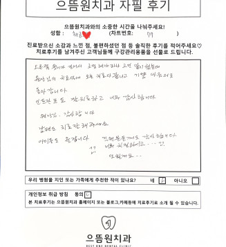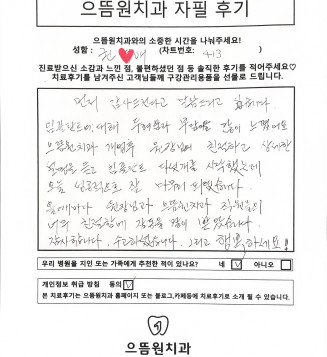 먼저 감사드린다고 말씀드리고 싶습니다. 임프란트에 대해 두려움과 부담을 많이 느꼈어요. 으뜸원 치과 개..
