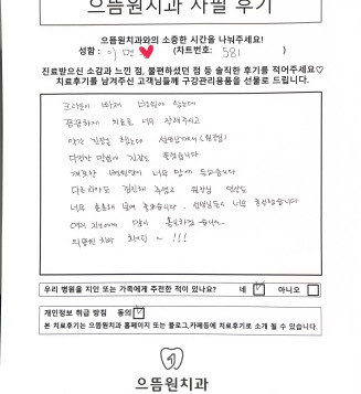 진료기간 동안 항상 친절하게 맞아주셔서 원장님, 간호사 분들께 너무 감사드립니다. 치료기간이 많이 길었지만..